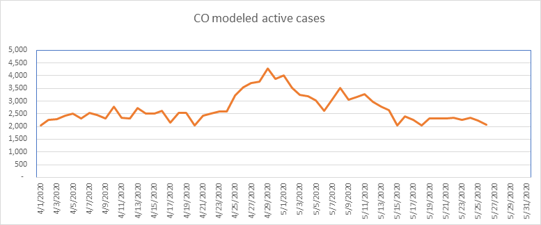 And finally, here is Colorado. Colorado is one of the states that has aberrations in their data. In any event, it looks like Colorado is about 52% below the peak on April 29th.
