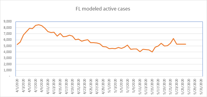 Florida seems to be leveling off from their 2nd half of May bump. The hot spot in Florida continues to be Miami. Other than in SE Florida, COVID presence is small.