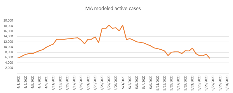 Another healthy drop in Massachusetts, now down 69% from the peak on April 27th. This is a remarkably rapid recovery.