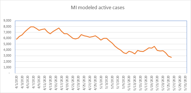 Another drop in Michigan today. Michigan is down 65% from the peak on April 6th.